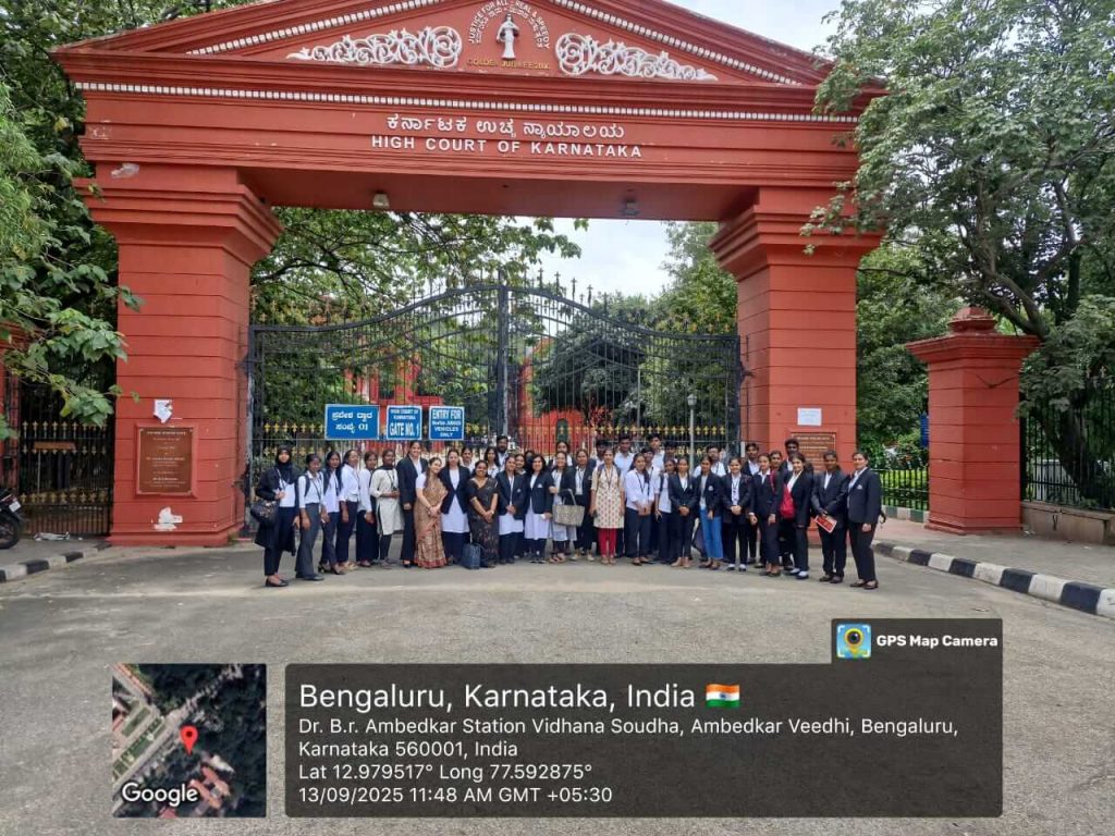 ISBR Law College organized an educational visit for its students to the Lok Adalat at the High Court of Karnataka, Bengaluru, on 13th September 2025. The visit was a critical component of legal education, designed to provide students with practical exposure to Alternative Dispute Resolution (ADR) mechanisms.