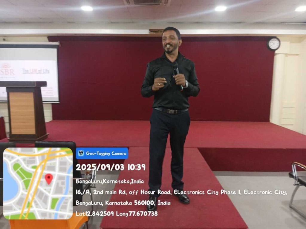 The highly interactive session was delivered by Mr. Manoj Kumar, the Founder and Executive Director of Life Mithra, Academy of Skills Development. Known for his engaging proficiency, the speaker captivated the large student audience with a single-person presentation, utilizing impressive mimics and tone changes to ensure a healthy interaction throughout the session.